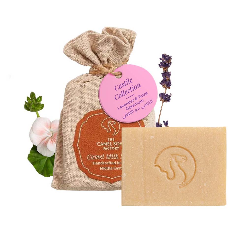 成分:オリーブ脂肪酸Na、グリセリン、ラクダ乳、水、ミツロウ脂肪酸Na、ラベンダー油、ニオイテンジクアオイ花油、ゲラニオール、リナロール、シトロネロール